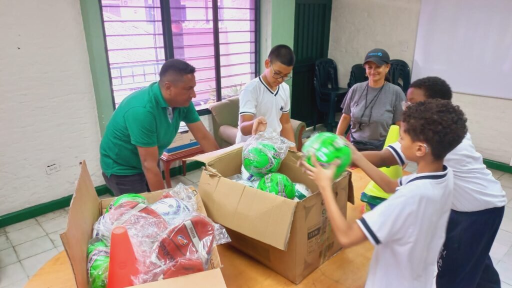 El día 4 marzo 2026, el Sr. rector de la Institución Educativa, realizó entrega a los docentes de educación fisica en compañia de algunos estudiantes de una importante dotación de elementos deportivos. La dotación entregada consta de balones de voleibol, baloncesto, futbol sala, conos, silbatos y escalera rapida.